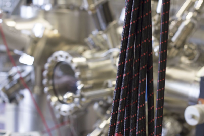 Das Hochleistungsmikroskop wird an Bungee-Seilen aufgehängt.