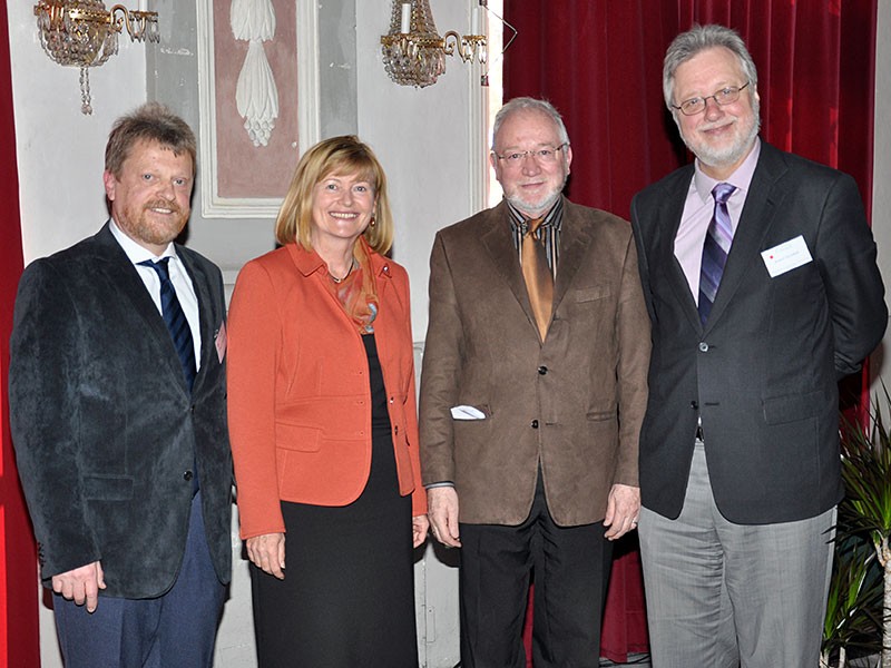 Die wissenschaftlichen Leiter der Konferenz, Sepp D. Kohlwein (l.) und Rudolf Zechner (r.), mit Rektorin Christa Neuper und Dekan Karl Crailsheim