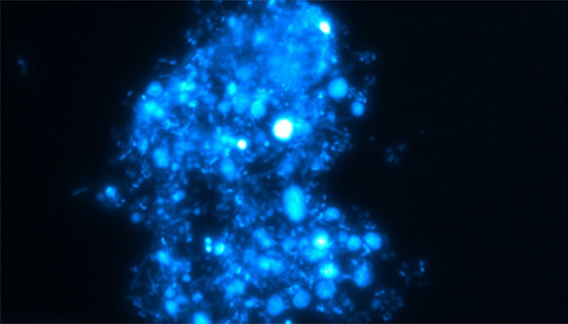 Lebensgemeinschaft von Nitrifizierern: Diese mikrobielle Lebensgemeinschaft mit karfiolartiger Struktur zeigt nitrifizierende Mikroorganismen, wie man sie in einer Kläranlage vorfindet. Dort tragen sie zur Entgiftung des Wassers bei. (Foto: Jan Roelof van der Meer)