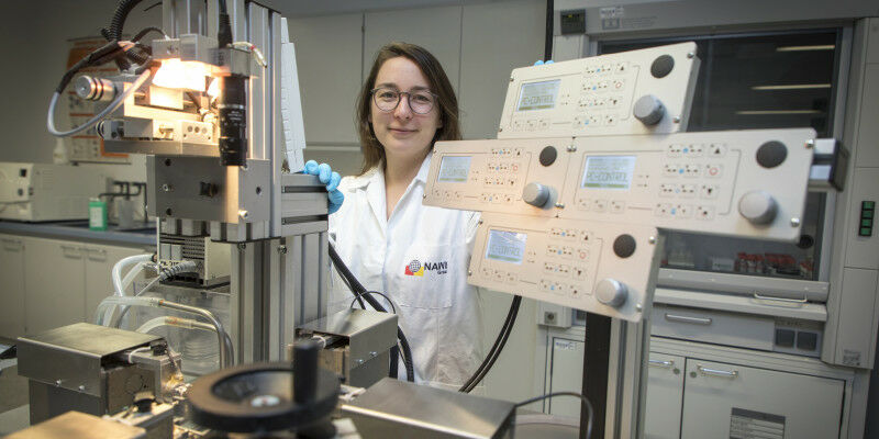 Biomechanikerin Justyna Niestrawska in ihrem Labor. Hier untersucht sie gesunde und erkrankte Aortenwände.