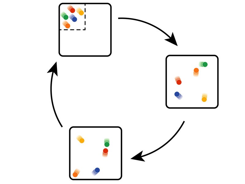 In der klassischen Physik kann man sich die Poincarésche Wiederkehr durch die Bewegung von Kugeln in einer Box vorstellen. Auch wenn diese mit einem geordneten Zustand beginnt, wird sich dieser Zustand irgendwann wiederholen.