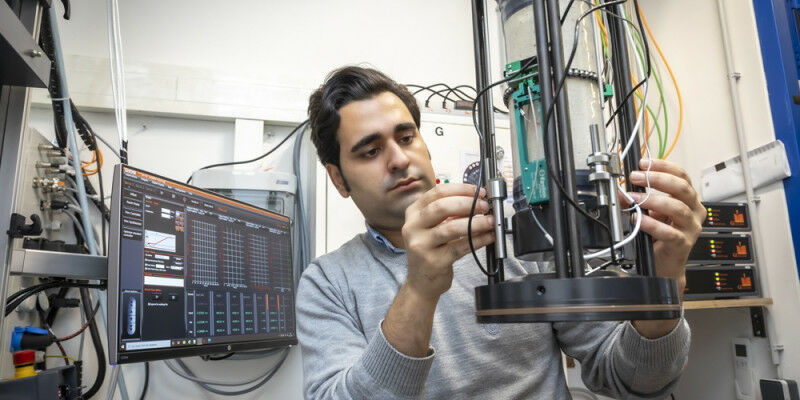 The new triaxial facility at the Institute of Rock Mechanics and Tunneling is used to test transitional rocks. Lunghammer - TU Graz - By Birgit Baustädter - Neither hard like stone, nor soft like soil: transition rock is important for almost every construction project, but difficult to study. But this is now possible at the TU Graz. Transition rock is soft rock and hard soil; it is inhomogeneous, anisotropic and brittle. "This material can be found almost everywhere where building activities are undertaken. And especially in tunnelling," explains Thomas Marcher, head of the Institute of Rock Mechanics and Tunnelling at Graz University of Technology. Until now, the geotechnical properties of this rock have only been determined in detail in a few laboratories throughout Europe - for example at ETH Zurich and RWTH Aachen.