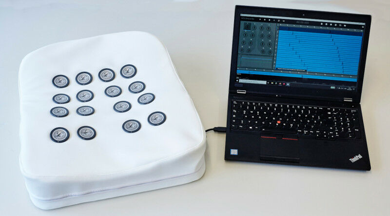 In insgesamt 16 Kanälen zeichnet das an der TU Graz entwickelte Aufnahmegerät die Lungengeräusche während der Atmung auf.