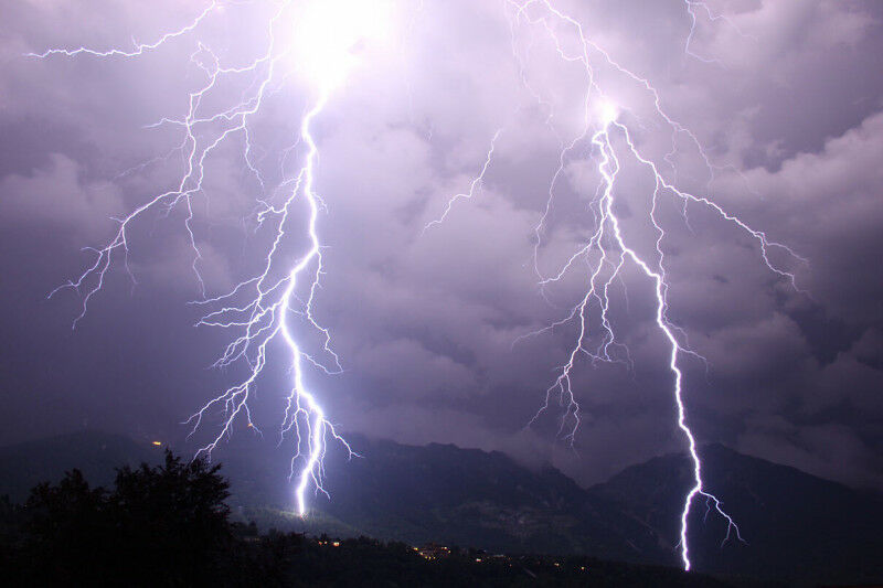 Blitze über Innsbruck Ein Innsbrucker Forscher:innen-Team hat neue Erkenntnisse über die Entwicklung der Blitzaktivität über den Alpen gewonnen.
