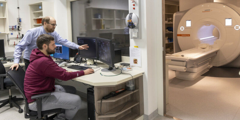 Um ihr Machine-Learning -Modell für die MRT-Bildgebung zu trainieren, nutzten Martin Uecker und Moritz Blumenthal Methoden des ,, Self-supervised Learnings ": Dabei sind nicht vorab kuratierte perfekte Bilder die Grundlage zum Trainieren des Modells, sondern eine Teilmenge der Ausgangsdaten, aus denen das Modell die Bilder rekonstruieren soll. Moritz Blumenthal erklärt es so: ,,Wir haben die vom MRT-Gerät gelieferten Messdaten in zwei Portionen aufgeteilt. Aus der ersten, größeren Datenportion rekonstruiert unser Machine-Learning -Modell das Bild. Anschließend versucht es, auf Basis des Bildes die ihm vorenthaltene, zweite Portion der Messdaten zu berechnen." Gelingt dem System dies nicht oder nur schlecht - so die zugrundeliegende Logik - muss das zuvor rekonstruierte Bild falsch gewesen sein. Das Modell wird aktualisiert, es erstellt eine neue verbesserte Bildvariante und versucht erneut, die zweite Datenportion zu berechnen. Dieser Vorgang läuft über eine Vielzahl von Runden, bis das Ergebnis stimmig ist. Dabei lernt das System aus einer Vielzahl solcher Rekonstruktionen in diesem Trainingsprozess, wie gute MRT-Bilder aussehen sollten. Später, während der Anwendung, kann das Modell dann direkt ein gutes Bild berechnen.Verfahren kann viele MRT-Anwendungen schneller und günstiger machen