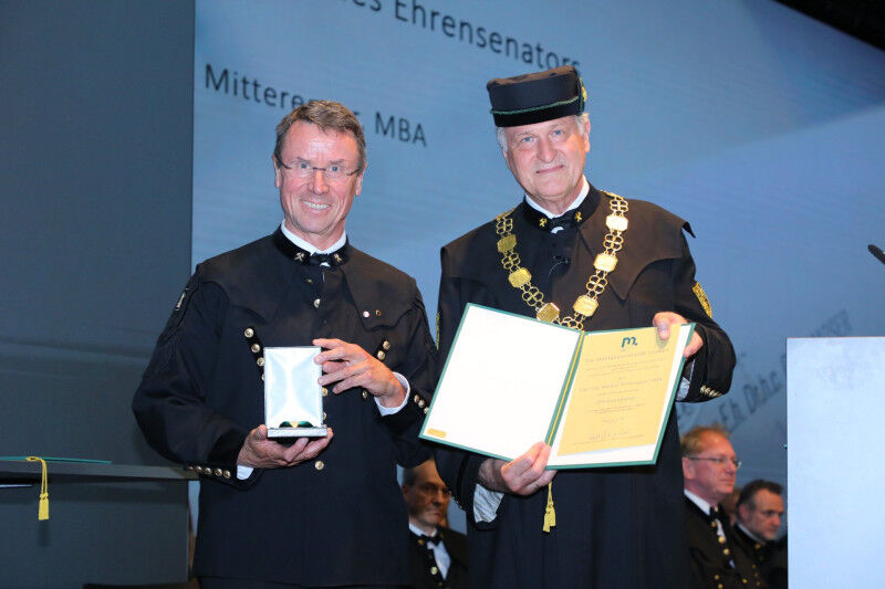 Ein besonderes Highlight war die Verleihung der Würde eines Ehrensenators an Dipl.-Ing. Markus Mitteregger, MBA CEO der RAG Austria AG. Die Verleihung erfolgte für seine wegweisenden Beiträge im Bereich der nachhaltigen Energiegewinnung und Energiespeicherung.,,Die Montanuniversität Leoben hat mir eine breite und zugleich fundierte tiefgehende Ausbildung geboten und mich in die Lage versetzt neue Technologien umzusetzen und damit ein Erdölbergbau-Unternehmen mit absehbarem Ablaufdatum an die sich die wandelnden Anforderungen anzupassen und ein erfolgreiches dauerhaftes Geschäftsmodell aufzubauen", betont Dipl.-Ing. Markus Mitteregger, MBA.