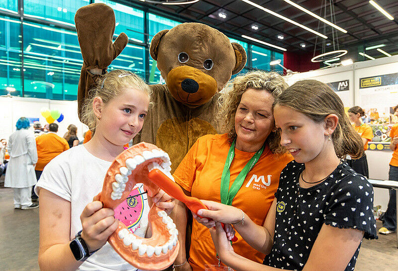 Zahnmedizin in der LNFAm vergangenen Freitag stellte die Med Uni Graz ihr breites Programmangebot im Rahmen der Langen Nacht der Forschung unter das Jahresmotto ,,20 Jahre Med Uni Graz" und konnte insgesamt rund 2.200 Besucher*innen an den Standorten Anatomie und Campus begrüßen. Das abwechslungsreiche Programm bot faszinierende Einblicke in die Welt der Medizin und zahlreiche interaktive Stationen sowie ein abwechslungsreiches Vortragsprogramm.Mitmachstation Das vielfältige Vortragsprogramm, das die neuesten Forschungsergebnisse und medizinischen Entwicklungen präsentierte, stieß auf großes Interesse. Expert*innen der Med Uni Graz hielten spannende Kurzvorträge, ua. zu Themen wie "Anti-Aging", "Digitale Revolution in der Gesundheitsversorgung" und "Neurochirurgische Operationen". Diese Vorträge zogen viele interessierte Zuhörer*innen an und wurden mit großem Interesse verfolgt.