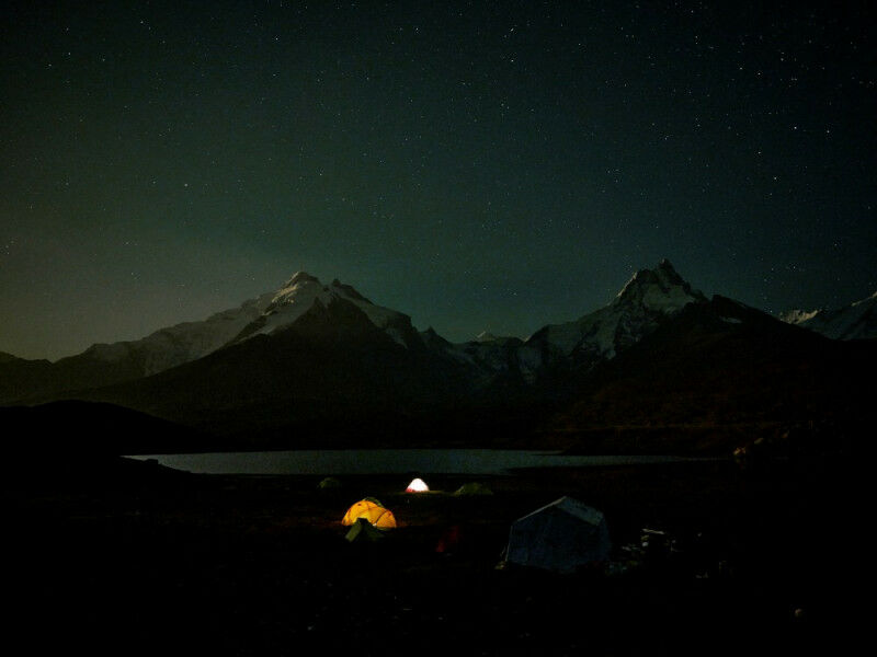 Gletscherarbeit ist gefährlich. In den ersten Tagen geht es darum, das Lager einzurichten - eine Toilette zu graben, die Küche einzurichten, die Ausrüstung vorzubereiten. Dann wachen wir früh auf, frühstücken mit dem ganzen Team und machen uns auf den Weg zum Gletscher. Die Arbeit ist anstrengend, vor allem in den hohen Lagen. Die Akklimatisierung ist entscheidend, und wir müssen immer an unsere Sicherheit denken, aber auch dann ist die körperliche Belastung hoch. Auf schuttbedeckten Gletschern, wie denen in Nepal, ist das Terrain besonders heikel. Das Gehen auf instabilen Felsen und das Tragen schwerer Ausrüstung fühlt sich wie Meditation an - man konzentriert sich voll und ganz auf jeden Schritt.