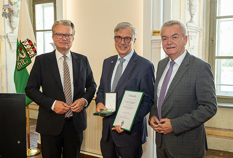 Hellmut Samonigg wurde von LH Christopher Drexler und LH-St. Anton Lang mit dem Großen Goldenen Ehrenzeichen des Landes Steiermark geehrt.