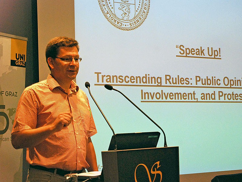 'Transformation, Transgressions, and Trust in Europe and the Americas' ist das Thema der aktuellen Graz International Summer School Seggau (GUSEGG), die noch bis 17. Juli läuft. Für AbsolventInnen und alle Interessierten gab es im Rahmen dieser Sommerschule auch einen Alumni-Tag mit Vorträgen und einer Podiumsdiskussion. Titel der Veranstaltung war 'Transcending Rules: Public Opinions, Political Involvement, and Protests'. ReferentInnen waren Klimaforscherin Helga Kromp-Kolb von der BOKU Wien, die über Klimawandel, Nachhaltigkeit und globale Verantwortung sprach, weiters Uni-Graz-Jurist Stefan Storr, der unter anderem den Aspekt der BürgerInnenbeteiligung erörterte, sowie Martin Hubinger vom Zentrum für Interamerikanische Studien der Uni Graz, der das Projekt 'Rural Bio-Methane Mobility in Brazil' vorstellte. Nach weiteren Referaten internationaler WissenschafterInnen und der Präsentation der druckfrischen Publikation 'Shifting Persperctives: Personal and Political Transformations? beschloss eine Podiumsdiskussion mit Ulla Kriebernegg vom Zentrum für Interamerikanische Studien und Heinrich Schnuderl, Grazer Dompfarrer sowie Bischofsvikar der Diözese Graz-Seckau, die Veranstaltung. Die GUSEGG findet heuer zum elften Mal als Kooperation der Universität Graz, der Diözese Graz-Seckau und der Internationalen Bischofskonferenz COMECE auf Schloss Seggau statt. Vergangenes Jahr gründete der AbsolventInnenverband alumni UNI graz ein eigenes 'Chapter GUSEGG? für AbsolventInnen der Sommerschule.
