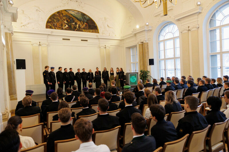 Der Chor der Montanuniversität Leoben Foto: MUL | Martina Stöbbauer Fand in der Aula der Montanuniversität die Matrikelscheinübergabe statt. Dieser traditionelle Willkommensgruß an unsere Erstsemestrigen ist in Österreich einzigartig. Elias und Maria mit ihrem Matrikelschein Foto: MUL | Martina Stöbbauer Im Rahmen dieser Studienzulassungsfeier wurden unsere Erstsemestrigen von Rektor Peter Moser, Vizerektorin Christina Holweg, Vizerektor Thomas Prohaska sowie der Österreichischen Hochschülerschaft und dem Universitätslehrerverband an der Montanuniversität willkommen geheißen. Auch der Hochschulchor der Montanuniversität bot eine stimmungsvolle musikalische Umrahmung mit Österreichischen und internationalen Bergmannsliedern. Anschließend wurde den Erstsemestrigen der Matrikelschein, als Bestätigung der Aufnahme an der Montanuniversität, persönlich von Rektor Moser und Vizerektor Prohaska Überreicht.