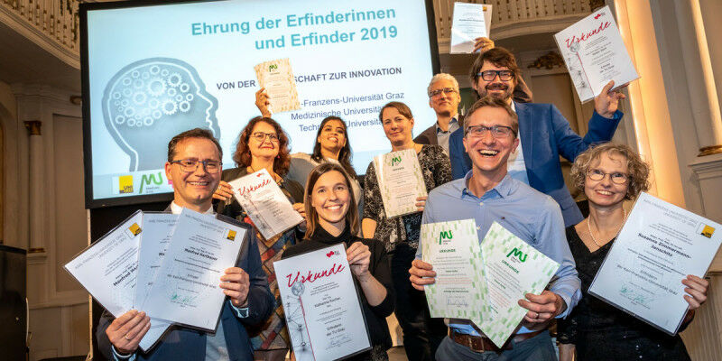 Med Uni Graz, TU Graz und Uni Graz ehrten gestern jene Wissenschafterinnen und Wissenschafter, die in den letzten beiden Jahren mit ihren Erfindungen und Patenten Pionierarbeit in der Forschung geleistet haben. Seit 2015 würdigen die Medizinische Universität Graz, die Technische Universität Graz und die Universität Graz im Zwei-Jahres-Rhythmus besonders ,,erfinderische" Forschende in einem gemeinsamen Festakt. Zur dritten Ausgabe dieser Ehrung waren 260 Wissenschafterinnen und Wissenschafter eingeladen, deren Erfindergeist zwischen Juli 2017 und Juni 2019 nicht weniger als 169 Erfindungsmeldungen und 71 Patentanmeldungen hervorbrachte. Insgesamt verzeichnen die drei Grazer Universitäten damit in den vergangenen fünfzehn Jahren rund 1200 Erfindungen. Hellmut Samonigg (Rektor der Med Uni Graz), Martin Polaschek (Rektor der Uni Graz) und Horst Bischof (Vizerektor für Forschung an der TU Graz) unterstrichen in ihren Grußworten unisono die Bedeutung dieser Leistungen für das Forschungsland Steiermark: ,,Universitäten sind Orte der Innovation. Erfindungen und Patente sind ein wesentlicher Faktor zur Messbarkeit von Innovation in der Forschung. Durch die Forschungsarbeit unserer Wissenschafterinnen und Wissenschafter hervorgebrachte anwendbare Technologien sind Garant für gesellschaftlichen Fortschritt und eine wesentliche Grundlage für eine starke, leistungsfähige Wirtschaft." - Kompetente Begleitung auf dem Weg von der Idee zur Patentanmeldung.