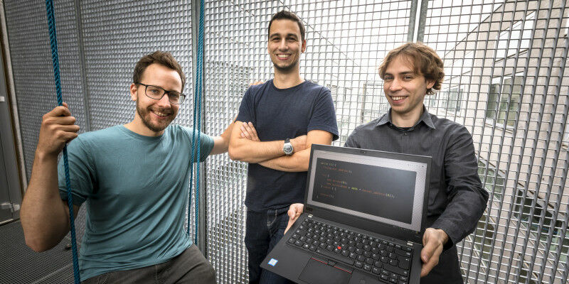 Michael Schwarz ( middle ) with Moritz Lipp and Daniel Gruss - and the few lines of code that can be used to execute the ZombieLoad attack. Lunghammer - TU Graz By Birgit Baustädter - Michael Schwarz is a security specialist at Graz University of Technology and, together with colleagues, generated a completely new field of research a few years ago. An interview with the researcher. "We don't want to see the world burning, as many people accuse us of doing," clarifies Michael Schwarz with a laugh, over coffee in the institute kitchen. "We just want to make things safer." Michael Schwarz is a security researcher at the Institute of Applied Information Processing and Communications and part of the team that discovered the Meltdown and Spectre security vulnerabilities in 2017, thus opening up a completely new field of research. At that time a doctoral candidate under Daniel Gruss at TU Graz , he has now completed his PhD - albeit under special conditions. The contents of his thesis were still secret at the time of his thesis defence, as ZombieLoad 2.0 contained the latest security loophole which the researchers made public in November 2019 - two weeks after Schwarz graduated.