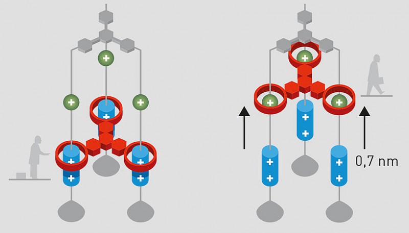 A tiny lift, artificial muscles and miniscule motors: The 2016 Nobel Laureates in Chemistry have miniaturised machines and taken chemistry to a new dimension. (Illustration: Johan Jarnestad/The Royal Swedish Academy of Sciences)