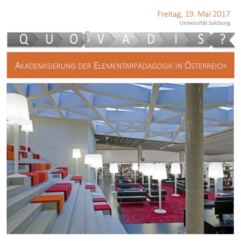 Academicization of Elementary Education in Austria Als eines der letzten europäischen Länder startete Österreich im Jahr 2014 erstmals akademische Studiengänge zur Professionalisierung von Elementarpädagog/innen. Drei Jahre danach ist es an der Zeit, eine erste Bilanz zu ziehen: WOHIN ENTWICKELT SICH DIE AKADEMISIERUNG DER ELEMENTARPÄDAGOGIK IN ÖSTERREICH? Die Fachtagung an der Universität Salzburg will am 19. Mai 2017 einerseits mit internationalen Vortragenden einen Überblick über potenzielle Tätigkeitsfelder akademischen Personals in der elementarpädagogischen Praxis geben, sowie Kosten und Nutzen der Akademisierung der Elementarpädagogik diskutieren. Andererseits geben die ersten Absolvent/innen, sowie Studierenden der drei Studiengänge (Wien, Salzburg, Koblenz)* Einblicke in die Ergebnisse ihrer Forschungsprojekte. Weitere 700 Tage nach der ersten Fachtagung 'Wissenschaft trifft Praxis' im Jahr 2015 laden wir zu einem vertiefenden Diskurs zwischen Lehrenden, Studierenden, Praktiker/innen, Bildungspolitiker/innen, Lehrer/innen und Schüler/innen der Bildungsanstalten für Elementarpädagogik (BAfEP) und Wissenschaftler/innen aus dem Bereich der Elementarpädagogik ein. Die Universität Salzburg freut sich als Veranstalterin, diese Tagung gemeinsam mit der Plattform EduCare und der Sektion Elementarpädagogik der ÖFEB (Österreichische Gesellschaft für Forschung und Entwicklung im Bildungswesen) durchzuführen. Weitere Infos und Programm finden Sie hier ! - At present, a complete edition of the works and letters of Ingeborg Bachmann is being produced in the Literaturarchiv Salzburg, a collection which received great attention in the media at the beginning of the year.