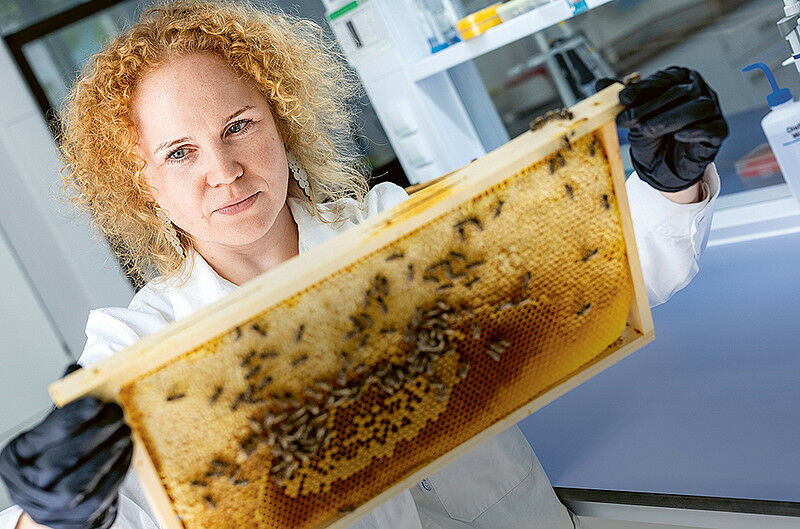 Dalial Freitak: ,,Die erste Impfung für Insekten eröffnet völlig neue Perspektiven, um schwere Krankheiten zu bekämpfen.' Foto: Uni Graz/Kanizaj - Uni Graz bestätigt wirksame Methode gegen Amerikanische Faulbrut Vor Krankheiten schützen uns Impfungen. Diese Methode kann auch bei der Honigbiene angewendet werden, um sie gegen die bakterielle Infektion Amerikanische Faulbrut zu wappnen. Eine internationale Studie mit Beteiligung der Universität Graz belegt die Wirksamkeit des ersten Vakzins für Insekten. Ein Team rund um Biologin Dalial Freitak hat nachgewiesen, dass sich die Immunisierung der geimpften Bienenkönigin auf nachfolgende Generationen Überträgt. ,,Ein abgeschwächter Krankheitserreger wird der Bienenkönigin über die Nahrung verabreicht und löst eine Immunreaktion aus", schildert Dalial Freitak. ,,Das schützt nicht nur sie selbst, sondern sogar ihre Nachkommen.