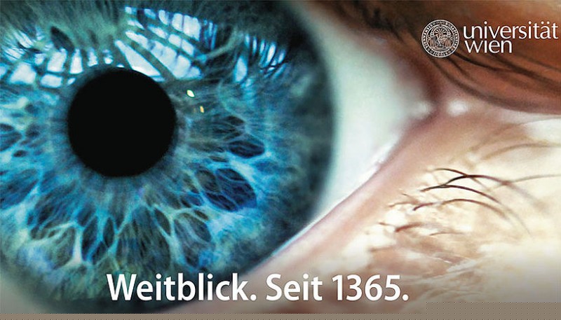 Zum 650-Jahr-Jubiläum hat die Universität Wien ihre Tore geöffnet und nach dem Motto "Wir stellen die Fragen" Einblick in Wissenschaft, Forschung und Lehre gegeben. Das Sujet "Weitblick. Seit 1365" im Dezember 2015 bringt zum Ausdruck, dass die Universität Wien dieses Motto auch in die Zukunft mitnimmt: Wir bleiben offen - für kommende Generationen und für alle, die mit uns die Fragen stellen.