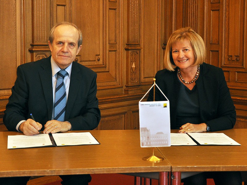 Ivan Svetlik, Rektor der Universität Ljubljana, und Rektorin Christa Neuper unterzeichneten heute einen neuen Kooperationsvertrag. Fotos: Uni Graz/Eklaude