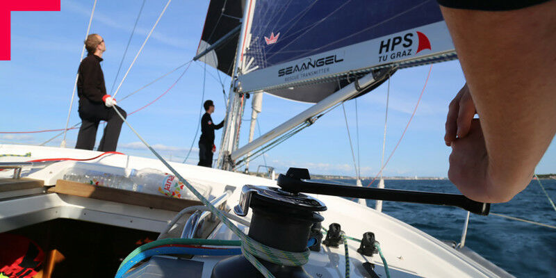 TU Graz Studierende setzen Segel: Das ,,High Performance Sailing Team’ der TU Graz nimmt auch an Regatten teil.
