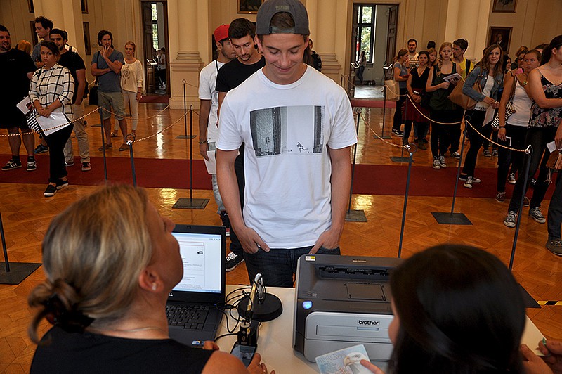 Rasch und effizient mit QR-Code: Ein eigens von Uni Graz kreiertes Check-in-System kam am 2. September 2015 erstmals zum Einsatz. Foto: Uni Graz/Schweiger